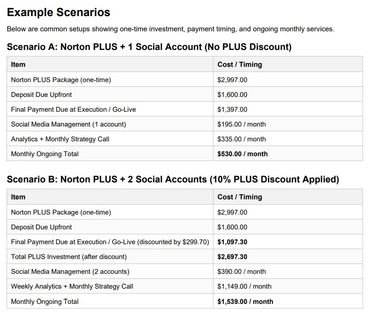 Social Media Management is an important key to keeping the public engaged with your company remembering your name, your logo, your expertise constantly so that when they need you, they call. We offer Social Media Account Management starting at $195.00/mo per account with a 12 month commitment. When adding 3 or more accounts automatically receive 10% discount on our Norton PLUS package.